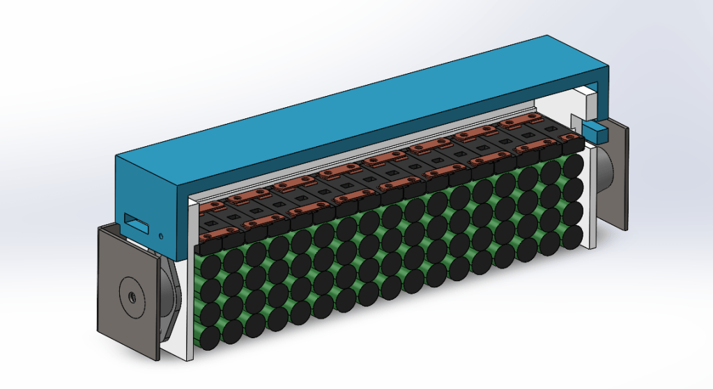 To do this I planned to have an inlet and outlet to guide air through holes in the casing assisted by high static pressure fans in order to reach a mass flow rate that would be adequate to provide enough cooling for the pack.